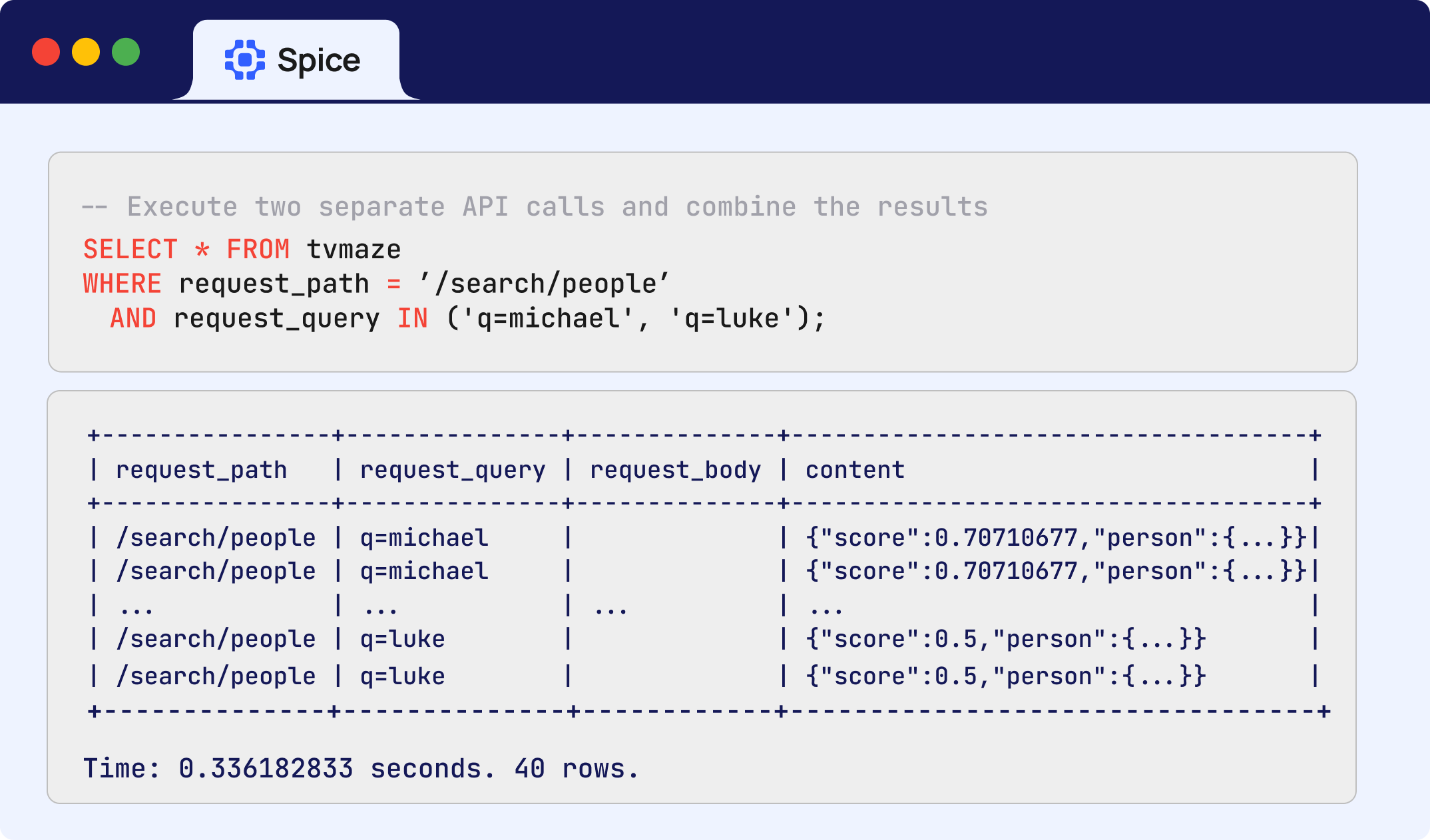 Query HTTP endpoints as tables in SQL queries with dynamic filters, with full support for results-caching including new stale-while-revalidate (SWR) support. Learn more here.