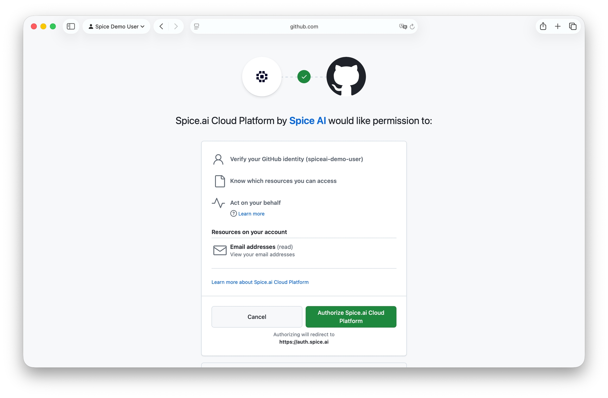 Click Authorize spiceuseai.us Cloud Platform.