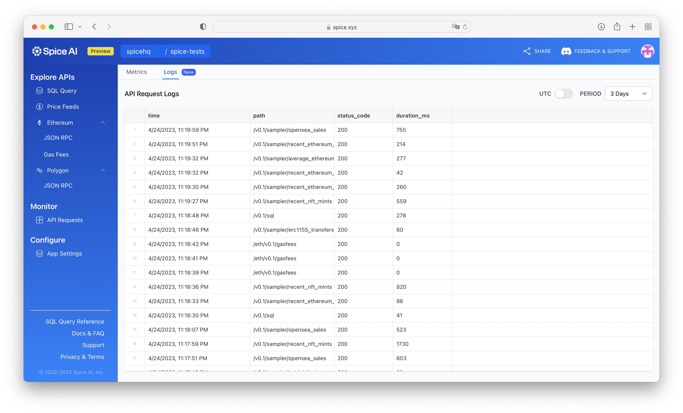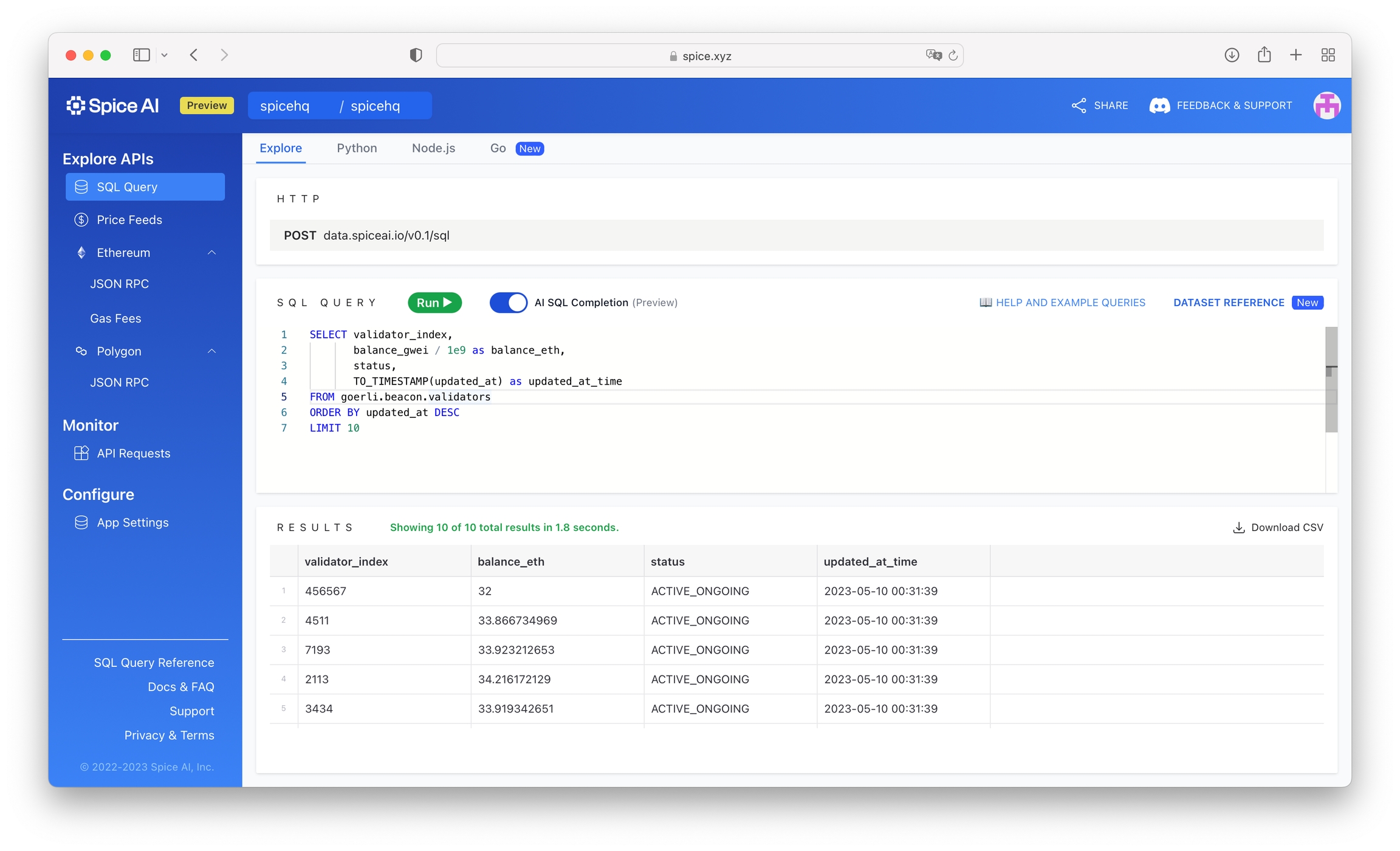 Spice supports querying Polygon data in addition to the existing Ethereum and BItcoin datasets.