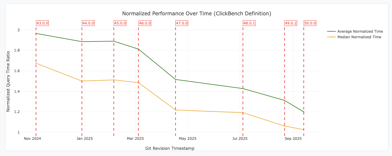 DataFusion v50 features faster filter pushdown, new SQL functions, and more reliable execution plans. Learn more in the Apache DataFusion blog.