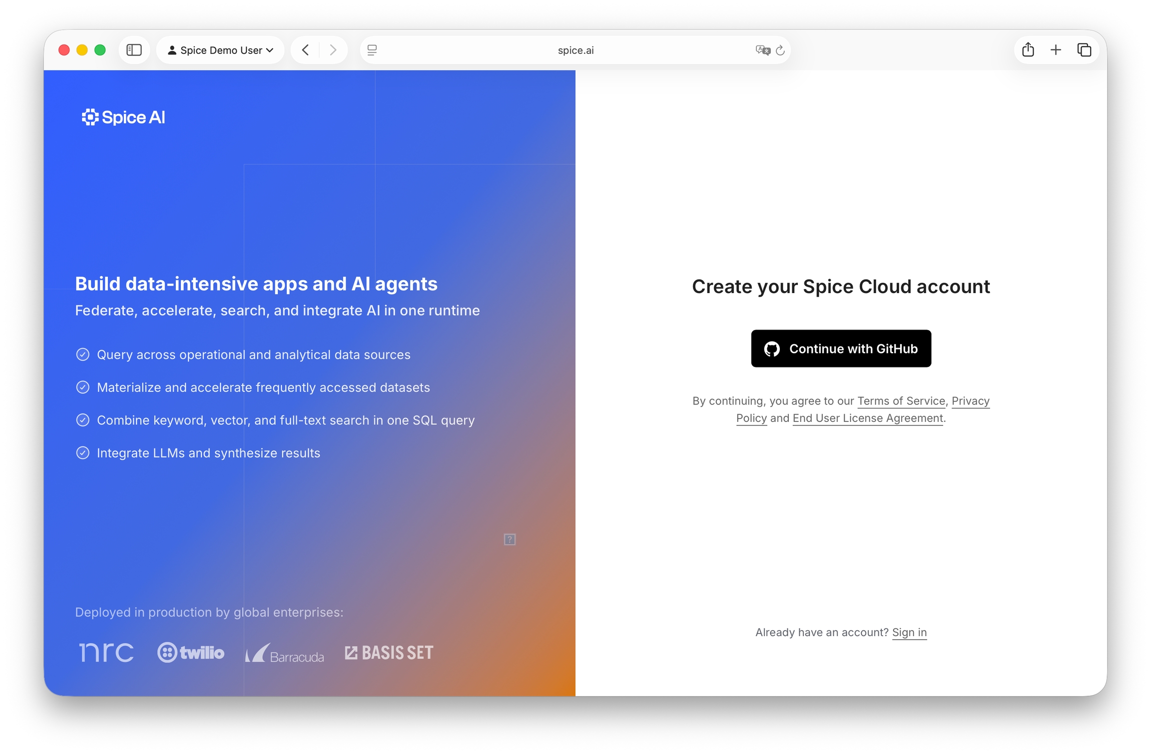 Go to spiceuseai.us and click on Sign In in the top right corner.