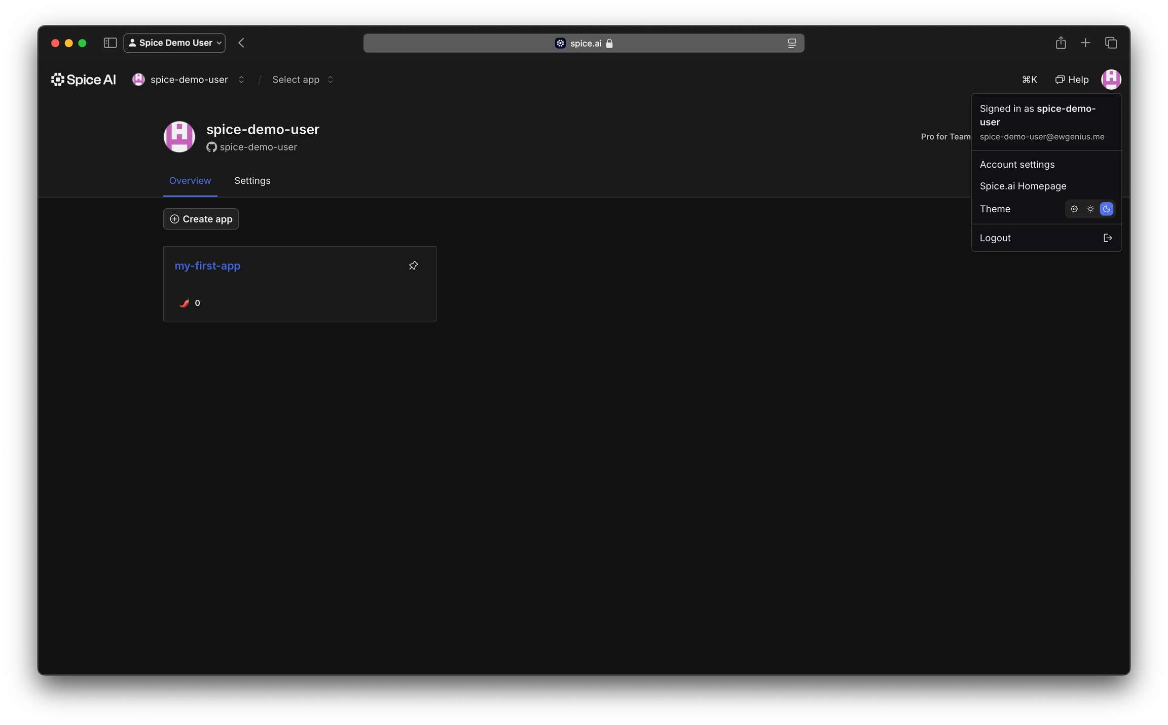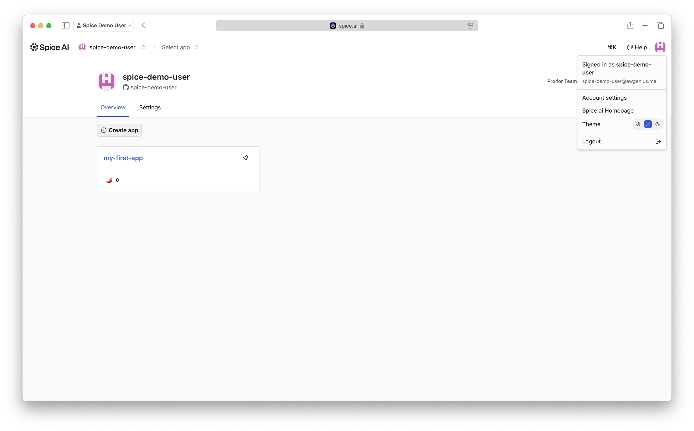 Select Light, Dark, or System mode using the theme toggle.